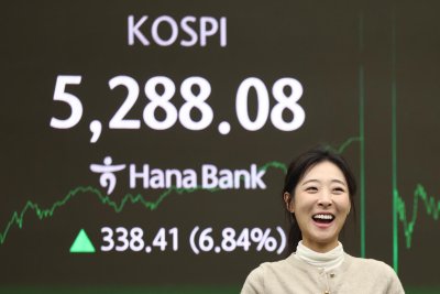 South Korean stocks shot up by the most in six years Tuesday, rebounding from the previous session's deep trough, as investors brushed off concerns over