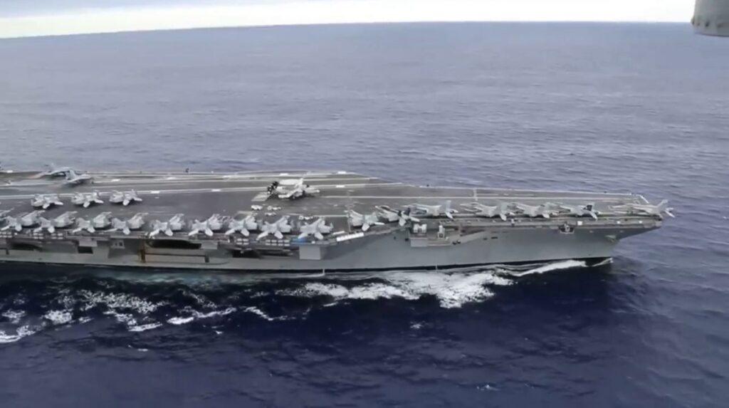 A US fighter jet shot down an Iranian drone that approached an American aircraft carrier in the Middle East on Tuesday, Washington said, as renewed tensions