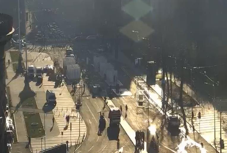DISTURBING video captures the moment staff in high-visibility jackets began shoving each other during a chaotic altercation with guests on a thrill ride